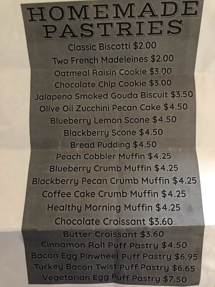 - Pastries: Choose from an array of homemade delights, including gluten-free options like the Cranberry Orange Muffin, or treat yourself to a Raspberry Cream Cheese Danish.
